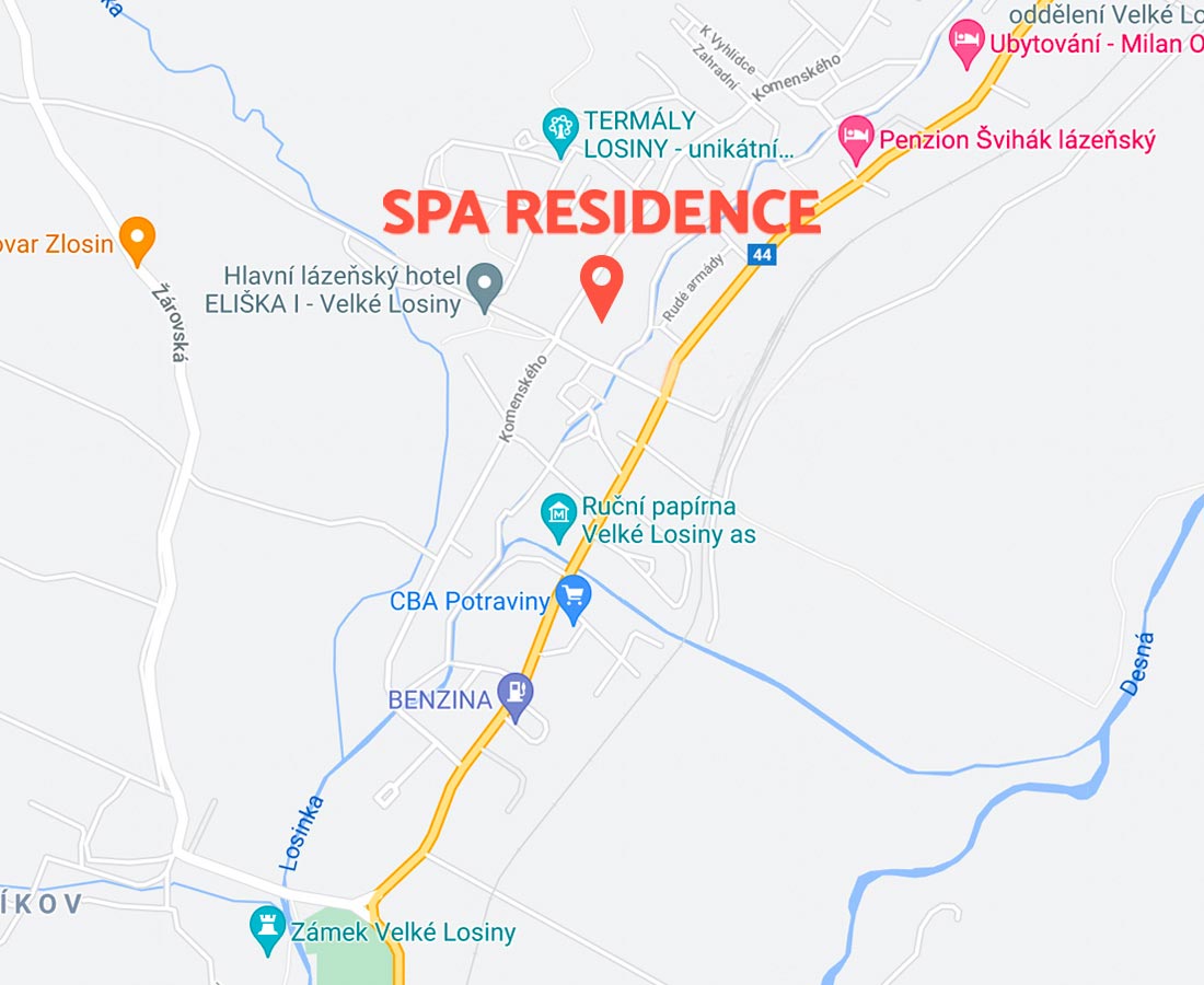 SPA RESIDENCE je unikátní projekt 60 moderních lázeňských apartmánů ve 4 samostatných bytových domech v centru lázeňského městečka Velké Losiny. Tento komplex vznikne v těsné blízkosti lázeňského parku a termálních lázní, v podhůří Hrubého Jeseníku.